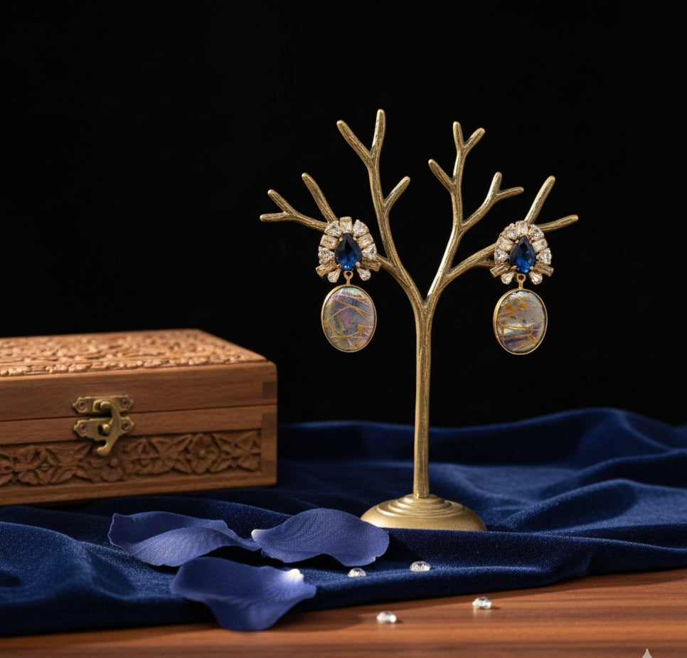 A majestic blend of tradition and modern elegance, these Indo-Western drop earrings are designed to make a sophisticated statement.