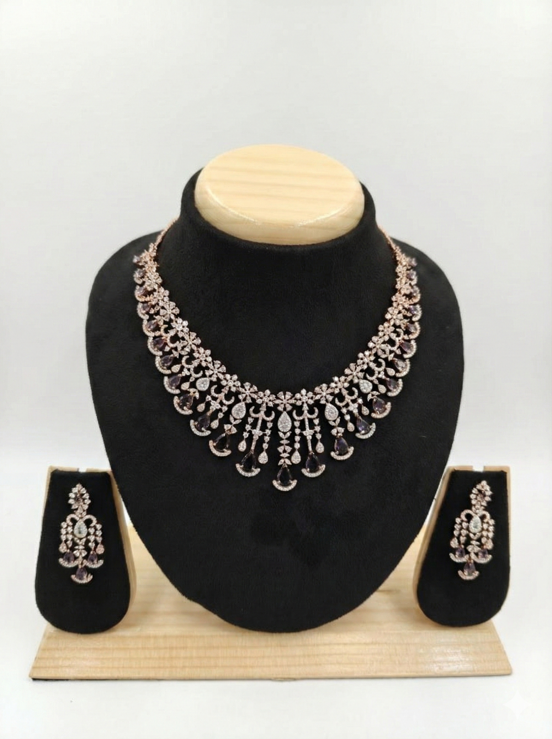 Mesmerizing Rose Gold AD Necklace Set by Jalparee